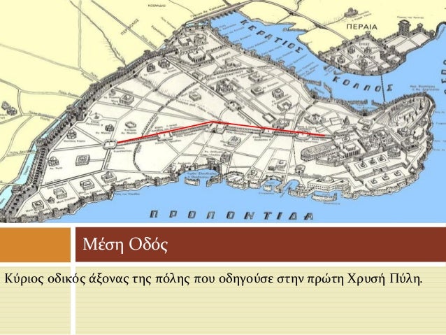 Κατά το πολεοδομικό σχεδιασμό μιας πόλης, βασικό χαρακτηριστικό είναι η χάραξη των δρόμων, καθώς αυτοί αποτελούν τα κύρια στοιχεία του πολεοδομικού ιστού. Η κύρια αρτηρία της πόλης ήταν η Μέση Οδός, η οποία ξεκινούσε και συνέδεε το Αυγουσταίον, δηλαδή την Αγορά του Μεγάλου Κωνσταντίνου, περνώντας από διάφορες πλατείες και καταλήγοντας στη Χρυσή Πύλη του τείχους του Θεοδοσίου με τον ένα κλάδο της, ενώ με τον άλλο που διακλαδιζόταν λίγο δυτικότερα από την Αγορά του Θεοδοσίου, έφτανε στους Αγίους Αποστόλους και στη Χαρισία Πύλη (μία οδός ανατολικοδυτικά με στοές και στις δύο πλευρές της, κάτι που προσέφερε στους κατοίκους και προστασία και σκιά). Η Μέση ήταν ο επισημότερος δρόμος της Πόλης. εκτός, όμως, από αυτήν, υπήρχαν και άλλοι δρόμοι, όπως οι δύο μεγάλοι άξονες από βορρά προς νότο, κάθετοι στο μεγάλο άξονα της Μέσης, ήδη από τον τέταρτο αιώνα. Στη διασταύρωση των οδών αυτών σχηματιζόταν το λεγόμενο Τετράπυλο, το οποίο πιο συγκεκριμένα βρισκόταν μεταξύ της αγοράς του Κωνσταντίνου και του Θεοδοσίου. Η μία από αυτές τις οδούς που ξεκινούσε από τον βορρά προς το νότο, πιθανόν συνέδεε τις δύο αγορές της ελληνορωμαϊκής πόλης του Βυζαντίου- το Στρατήγιον από τα λιμάνια του Κερατίου κόλπου και το Τέτραστον στο νότο.